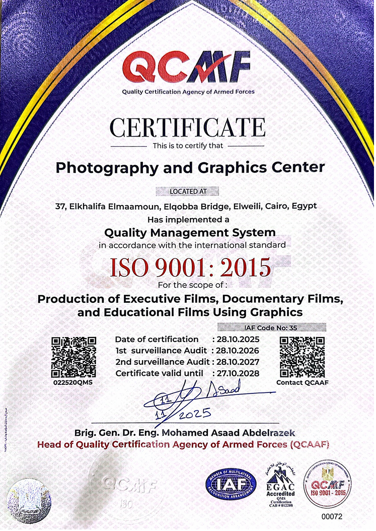 تم بتاريخ 12 / 11 / 2025 منح شهادة المطابقة للمواصفة القياسية الدولية
